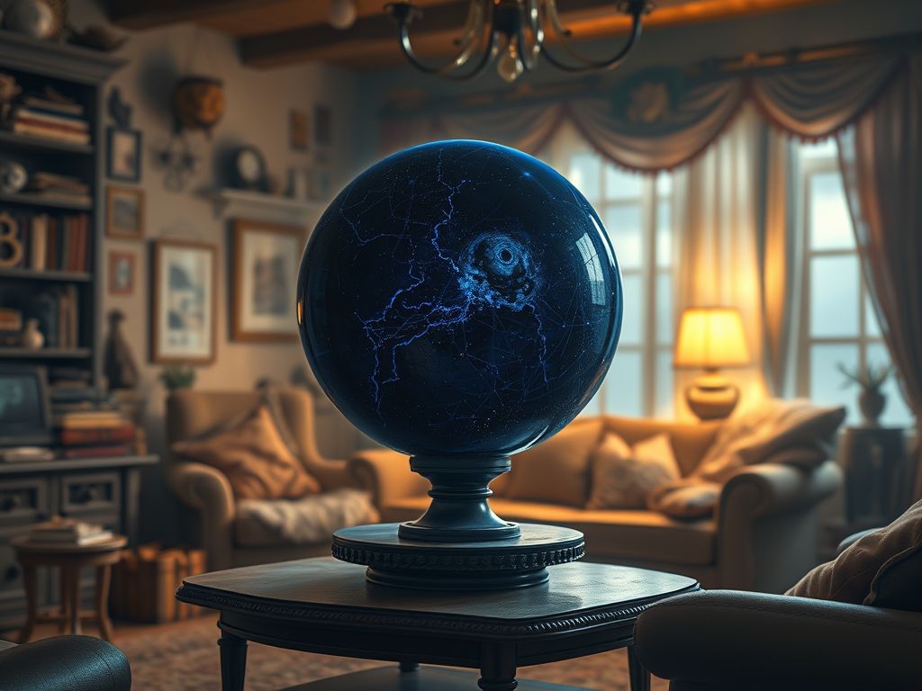 “Stop asking questions,” Twiglet snapped. She blew away the dust and lifted the lid, reaching into the protective padding and carefully pulling out a dark blue sphere with a flat base.